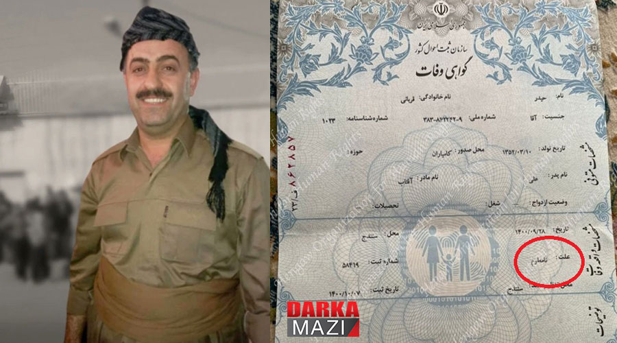 İnsan hakları Örgütü Hengaw’ın bildirdiğine göre Doğu Kürdistan’ın Kamyaran İl Nüfus Dairesi’nden Heyder Qurbanî için düzenlenen ölüm belgesinde ölüm sebebi kısmına “bilinmiyor” ibaresi yazıldı.